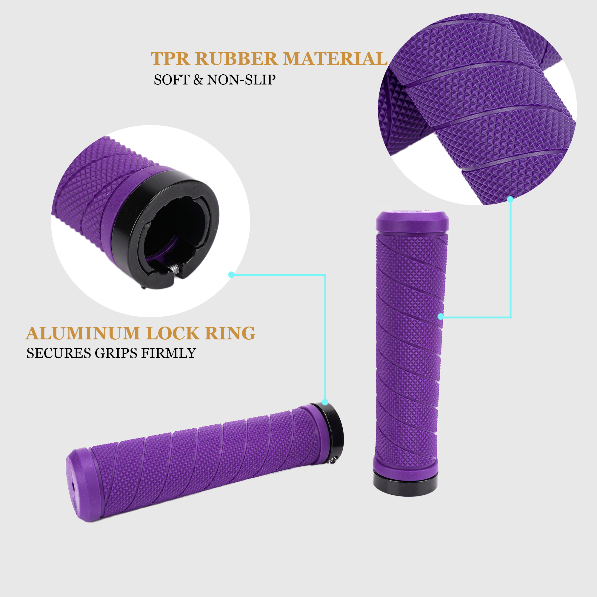 The dual locking collars are crafted to help reduce rotation, particularly on off-road terrain. These grips may fit most standard 22.2mm handlebars, offering broad compatibility for mountain bikes, BMX, e-bikes, and other types of bicycles.