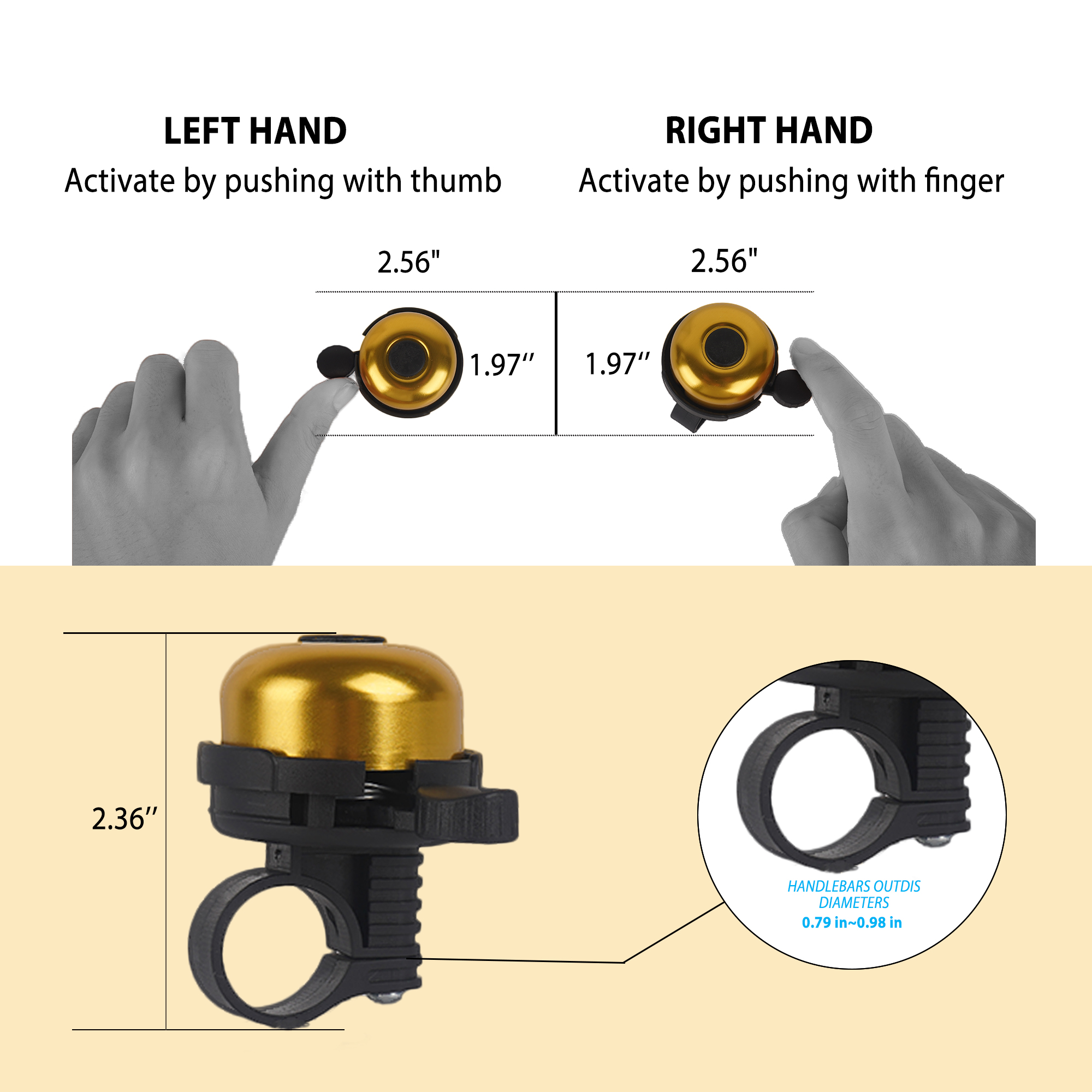 Universal Compatibility: Designed to fit handlebars with diameters ranging from 0.87 to 1.25 inches (22.2mm to 31.8mm), making it suitable for mountain bikes, road bikes, folding bikes, and scooters.