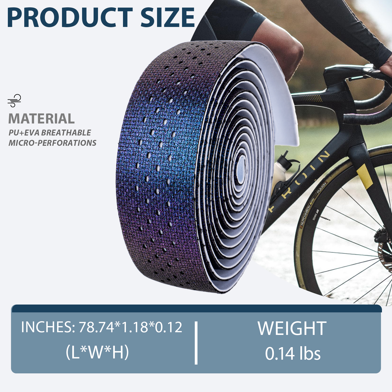 The tape changes from blue to purple depending on the lighting, offering a unique and vibrant look that will turn heads on ride.