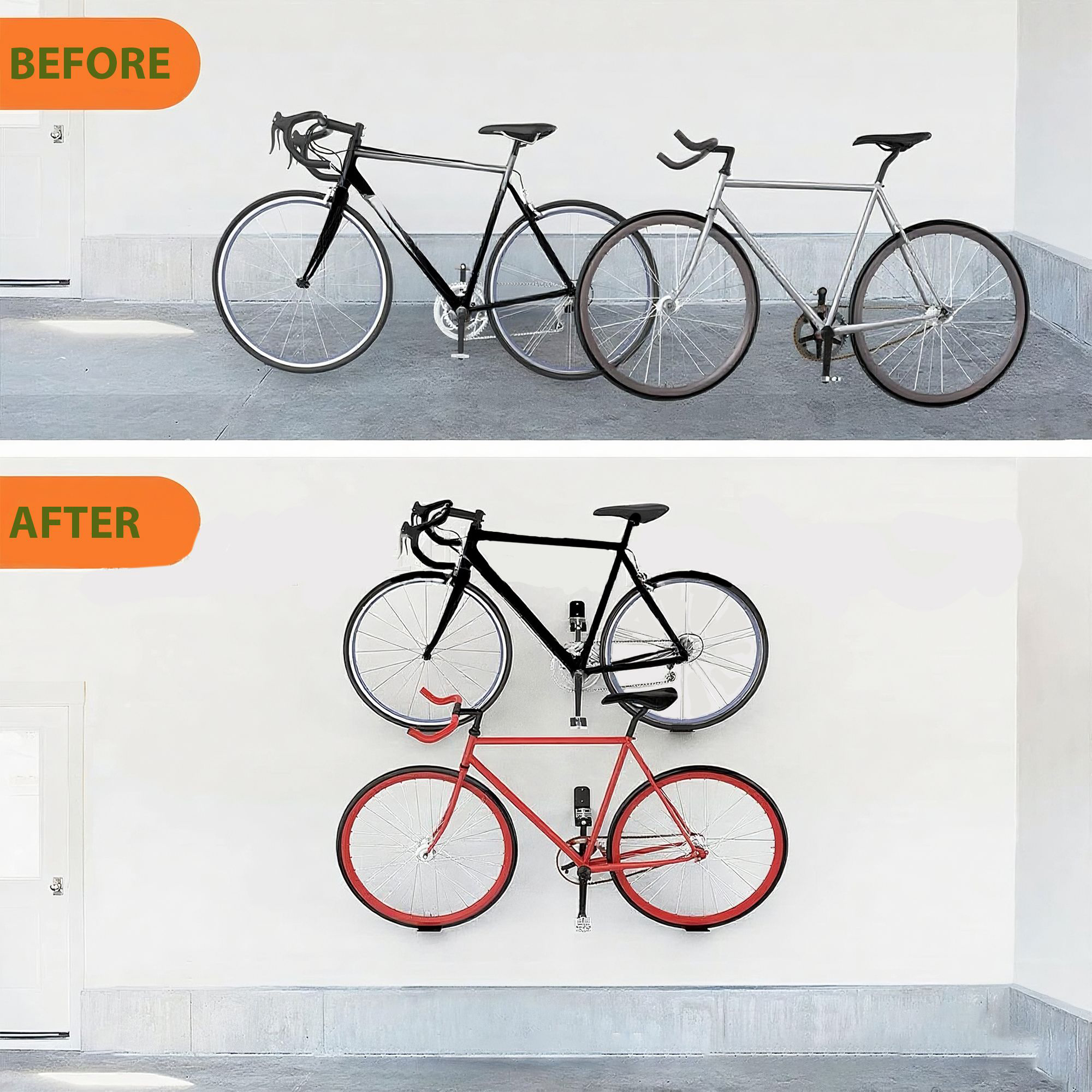 Wall Bike Mount, Heavy Duty Bicycle Wall Mount Hangers, Space Saving Vertical Bike Storage Racks for Road and Mountain Bikes, Indoor Garage Organization (Black)